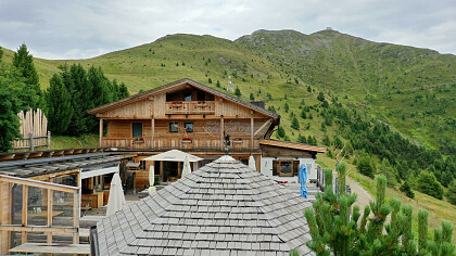 Sulla terrazza molto solare,l`ospite si sente cosi vicino alle montagne,sorseggiare un drink rinfrescante e un pasto rinforzante e`una vera delizia.I bambini sono in buone mani nel parco giochi sopra il rifugio.Al interno ce´spazio per 70 persone nel salotto rustico.Puoi aspettarti ore conviviali e pasti caldi.