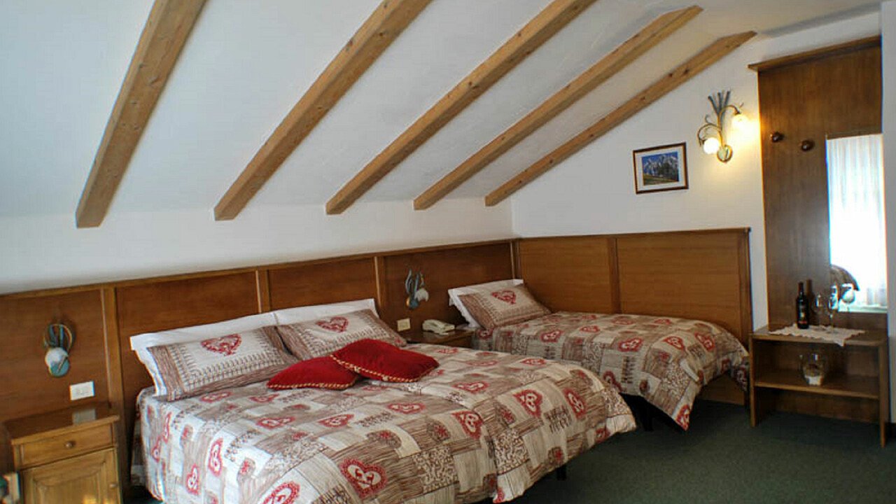 La struttura a conduzione famigliare offre accoglienti camere arredate in legno e dotate di servizi privati, phon, TV satellitare, cassaforte, Wi-Fi e telefono. Alcune con balcone con vista panoramica sulle Dolomiti.