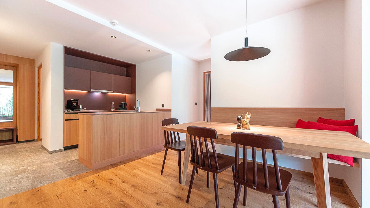 La struttura è stata rinnovata con un design moderno e luminoso, che unisce linee pulite e materiali naturali. Le camere, le suite e gli appartamenti di nuova costruzione sono accoglienti, funzionali e pensati per far sentire la famiglia a proprio agio, con dotazioni dedicate ai bambini e un’atmosfera calda che ricorda la comodità di casa, ma con la magia della montagna fuori dalla finestra.