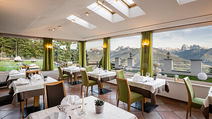 Ottima cucina locale ed internazionale nel ristorante che offre un'abbondante colazione a buffet, dolci fatti in casa al pomeriggio e cena con menu di 4 portate. Su richiesta piatti vegetariani, senza glutine o lattosio. Da non perdere le degustazioni di grappa locale.