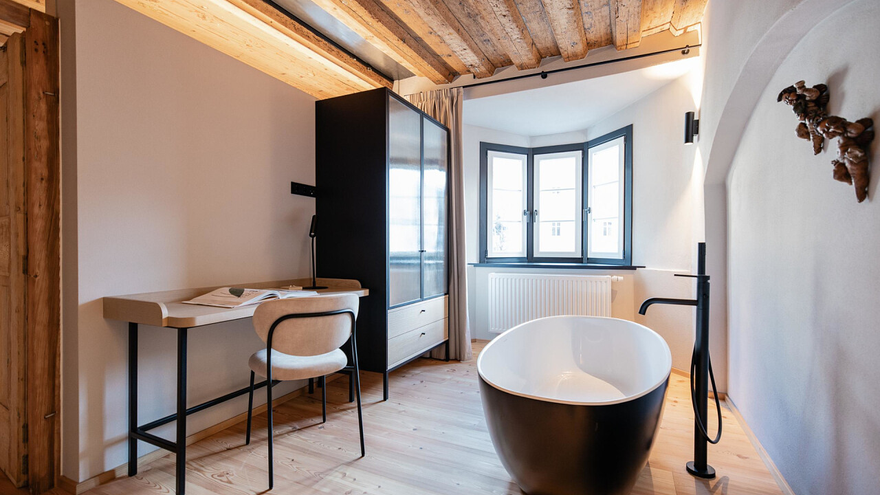 Il Concept Living by Schwarzer Adler si esprime attraverso i suoi esclusivi studio, vere e proprie oasi di relax, dove il design, la funzionalità e il comfort si fondono in uno stile inconfondibile. Ogni spazio è stato pensato non solo per soddisfare le esigenze degli ospiti, ma anche per riflettere ciò che per loro è importante. Gli interni non sono stati semplicemente progettati, ma curati come una vera opera d’arte, per offrire un’esperienza sensoriale unica. Ogni dettaglio, dalle linee eleganti del design agli elementi di lusso discreto, è studiato per garantire un soggiorno dove il comfort e l'estetica si intrecciano in modo armonioso. Per il massimo benessere, il Big Studio Wellness Supreme dispone di una vasca freestanding e una sauna privata.