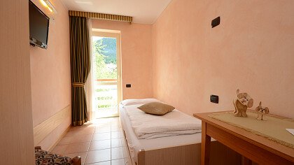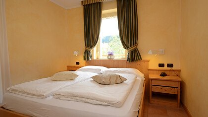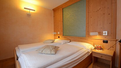 L’accogliente struttura è adatta a tutti (famiglie, coppie, gruppi di amici o persone anziane) ed offre sia la mezza pensione sia la pensione completa. Le spaziose camere e stanze famigliari sono arredate in legno e si compongono di: bagno con doccia, phon, tv, Wi-Fi, telefono e cassaforte.