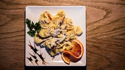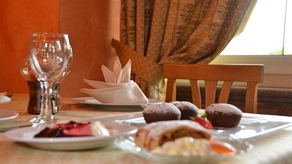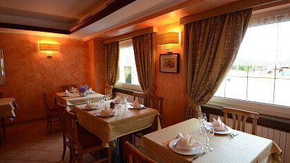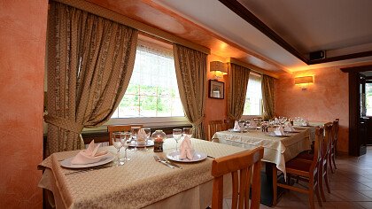 Nella confortevole sala da pranzo, gli ospiti possono degustare ottime specialità trentine e squisiti piatti di pesce. Vengono organizzate anche serate a tema.